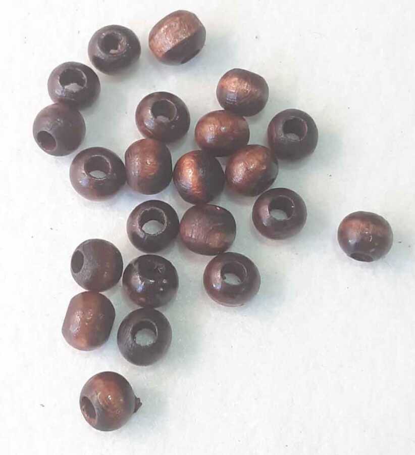 Angel Çanta Aksesuar 10 Adet Ahşap Yuvarlak Boncuk. (Koyu Renk)