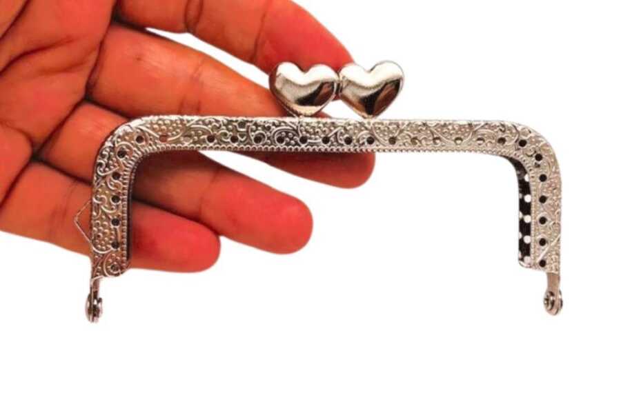 Angel Çanta Aksesuar 10.5 cm Dikdörtgen Cüzdan Klipsi Cüzdan Bursu Gümüş Renk Kalpli Model