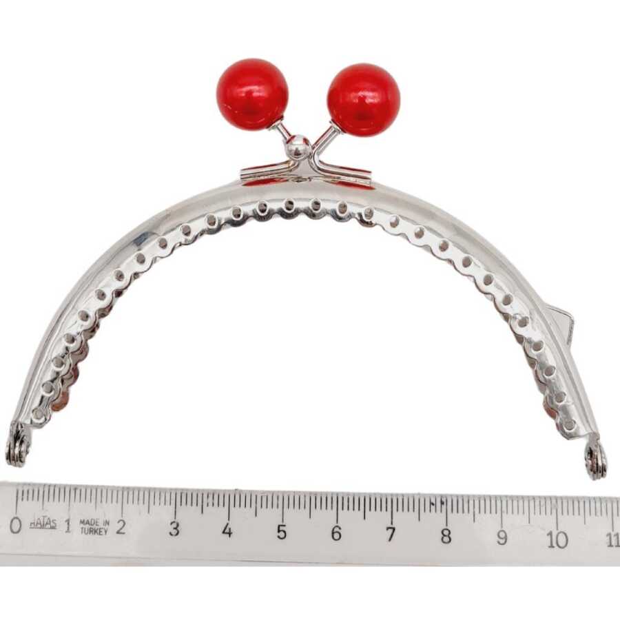 Angel Çanta Aksesuar 10.5 cm Gümüş Metal Bordo Toplu Oval Cüzdan Klipsi Çanta Bursu Model 2