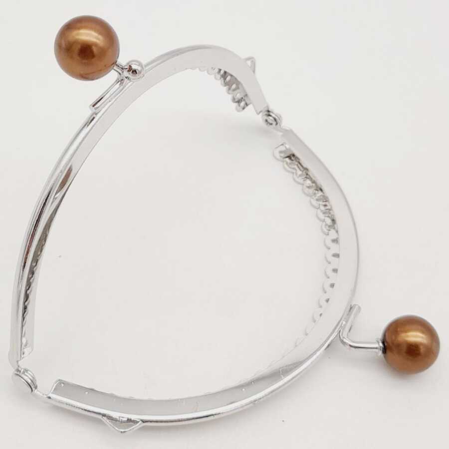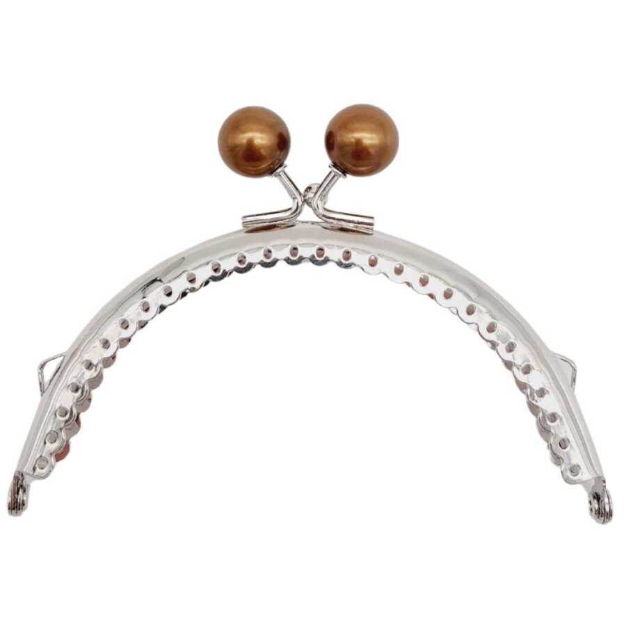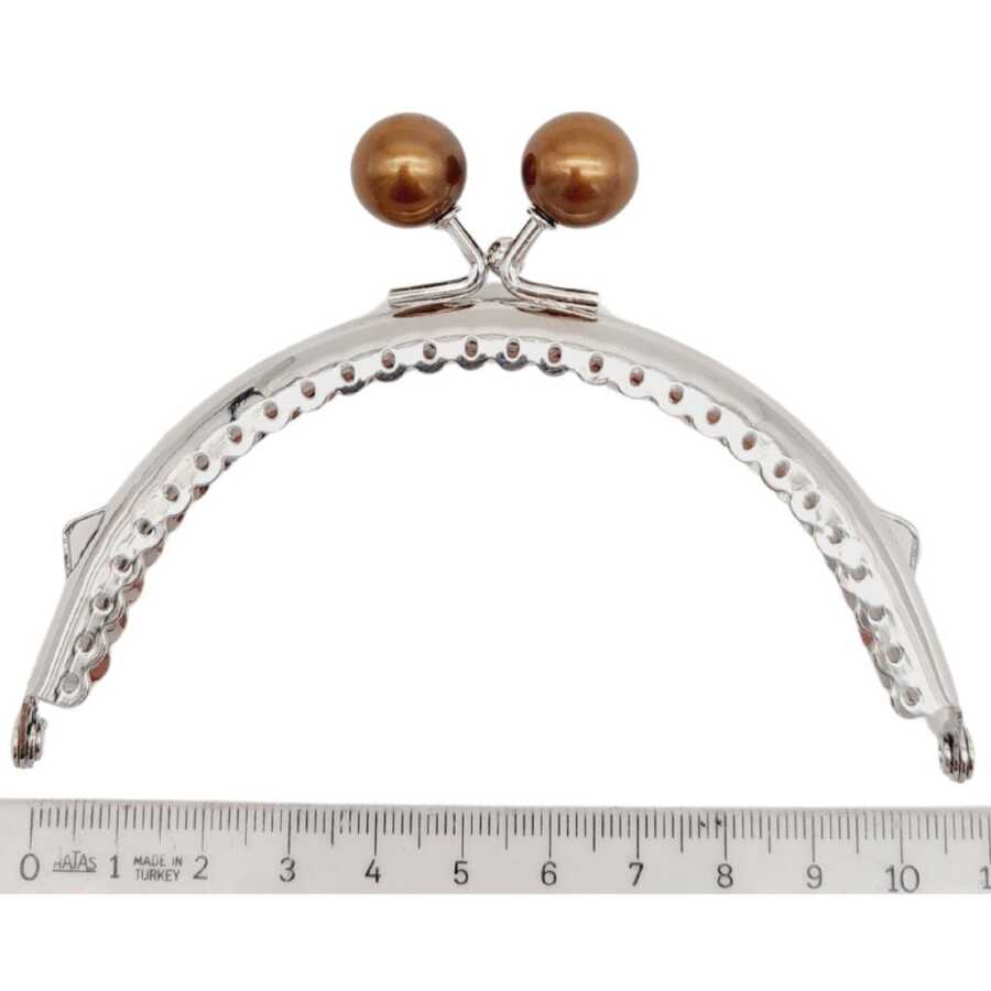 Angel Çanta Aksesuar 10.5 cm Gümüş Metal Kahverengi Toplu Oval Cüzdan Klipsi Çanta Bursu Model 2