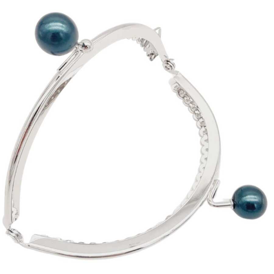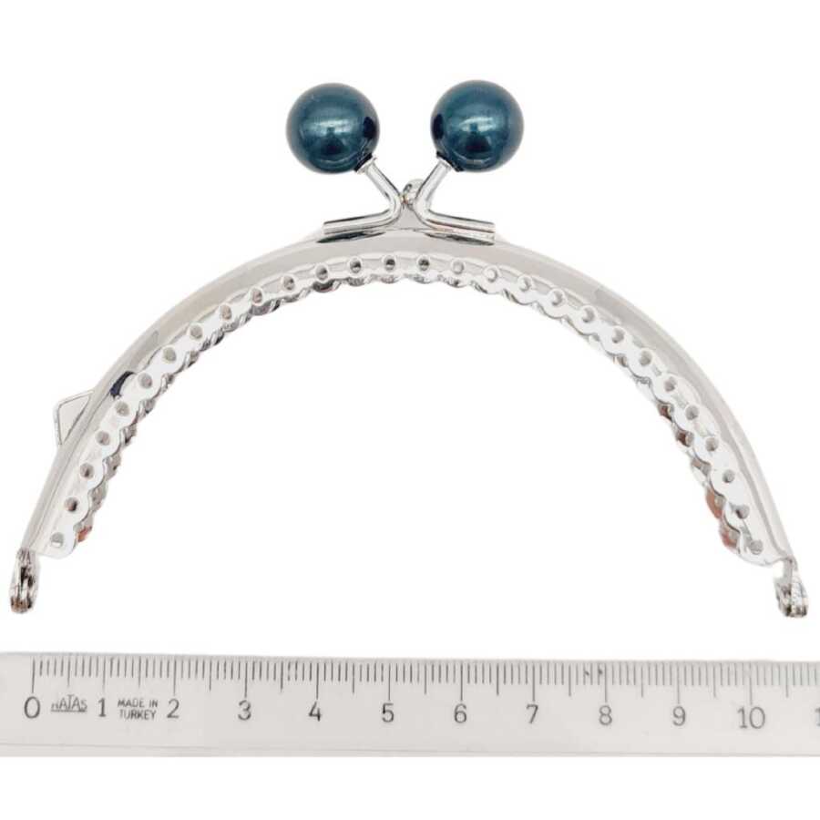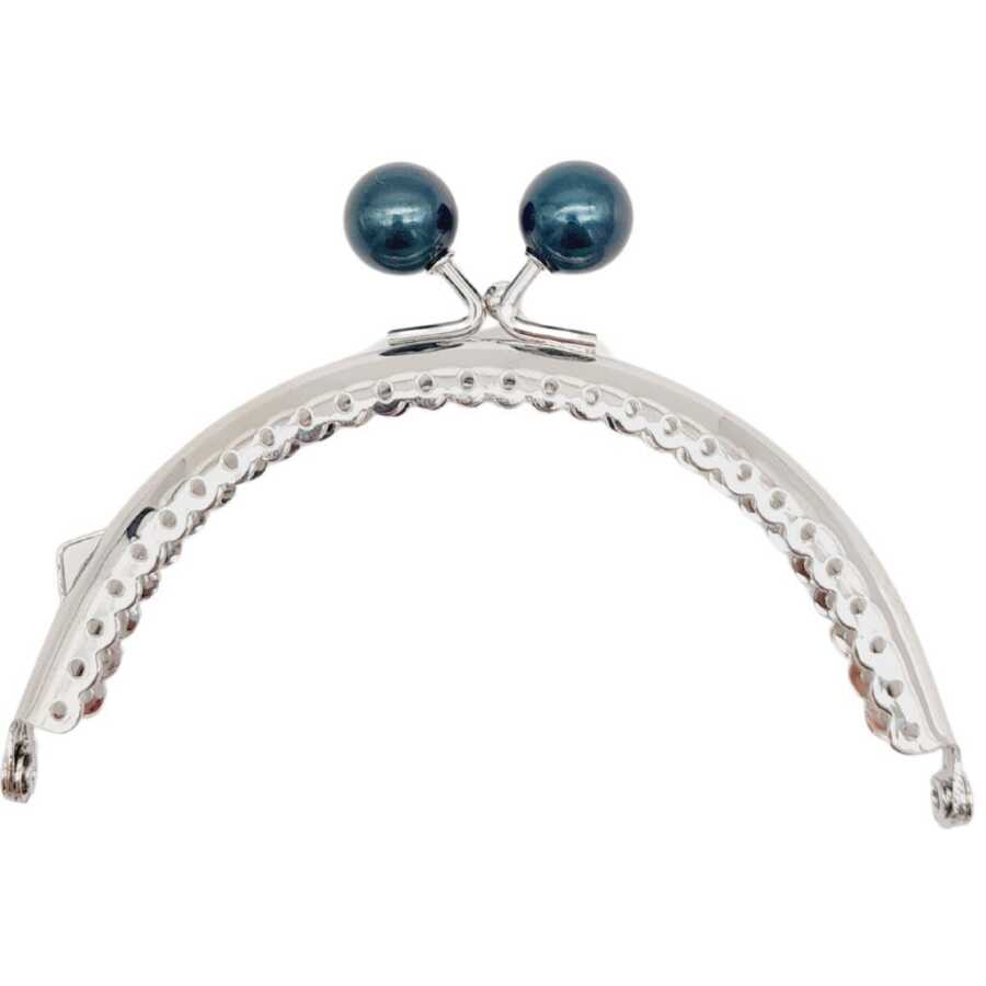 Angel Çanta Aksesuar 10.5 cm Gümüş Metal Koyu Lacivert Toplu Oval Cüzdan Klipsi Çanta Bursu Model 2