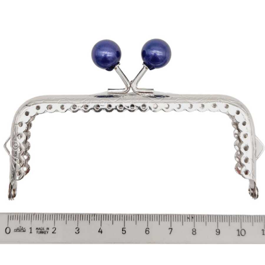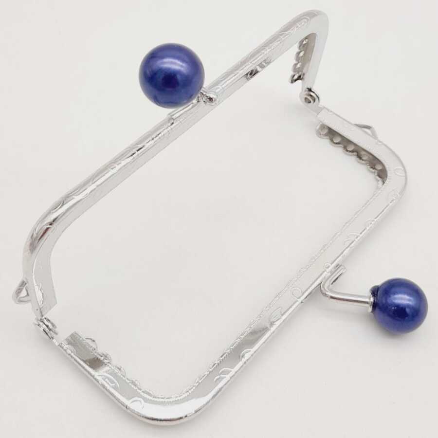 Angel Çanta Aksesuar 10.5 cm Gümüş Metal Lacivert Toplu Dikdörtgen Cüzdan Klipsi Çanta Bursu Model 2