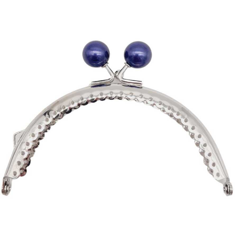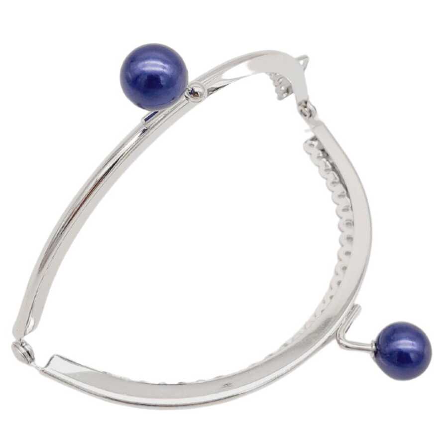 Angel Çanta Aksesuar 10.5 cm Gümüş Metal Lacivert Toplu Oval Cüzdan Klipsi Çanta Bursu Model 2
