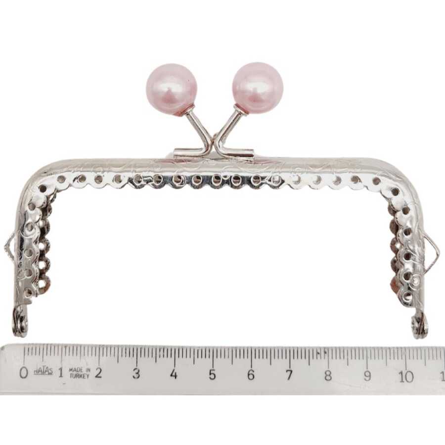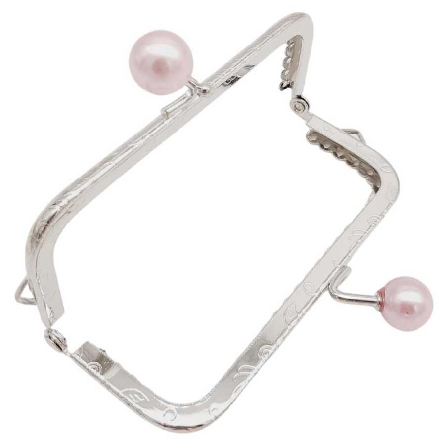 Angel Çanta Aksesuar 10.5 cm Gümüş Metal Pudra Toplu Dikdörtgen Cüzdan Klipsi Çanta Bursu Model 2