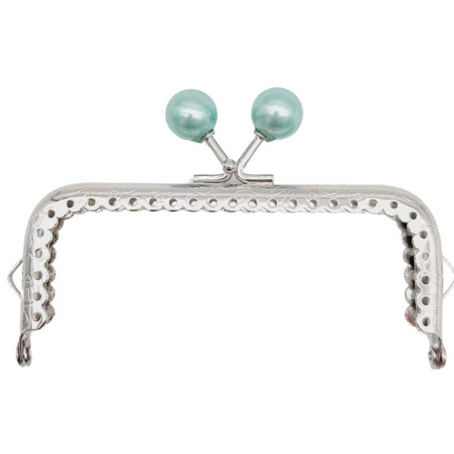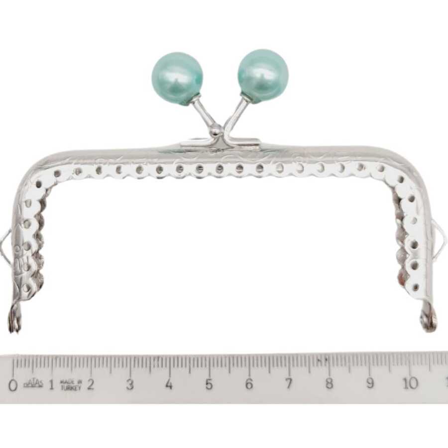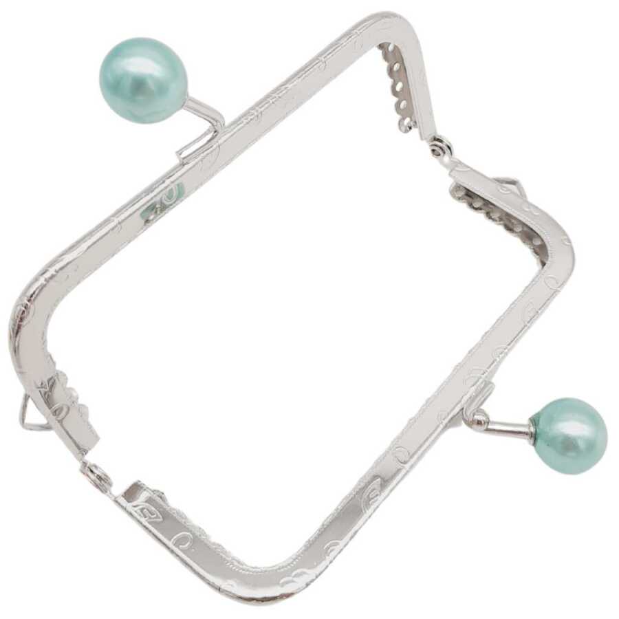Angel Çanta Aksesuar 10.5 cm Gümüş Metal Su Yeşili Toplu Dikdörtgen Cüzdan Klipsi Çanta Bursu Model 2
