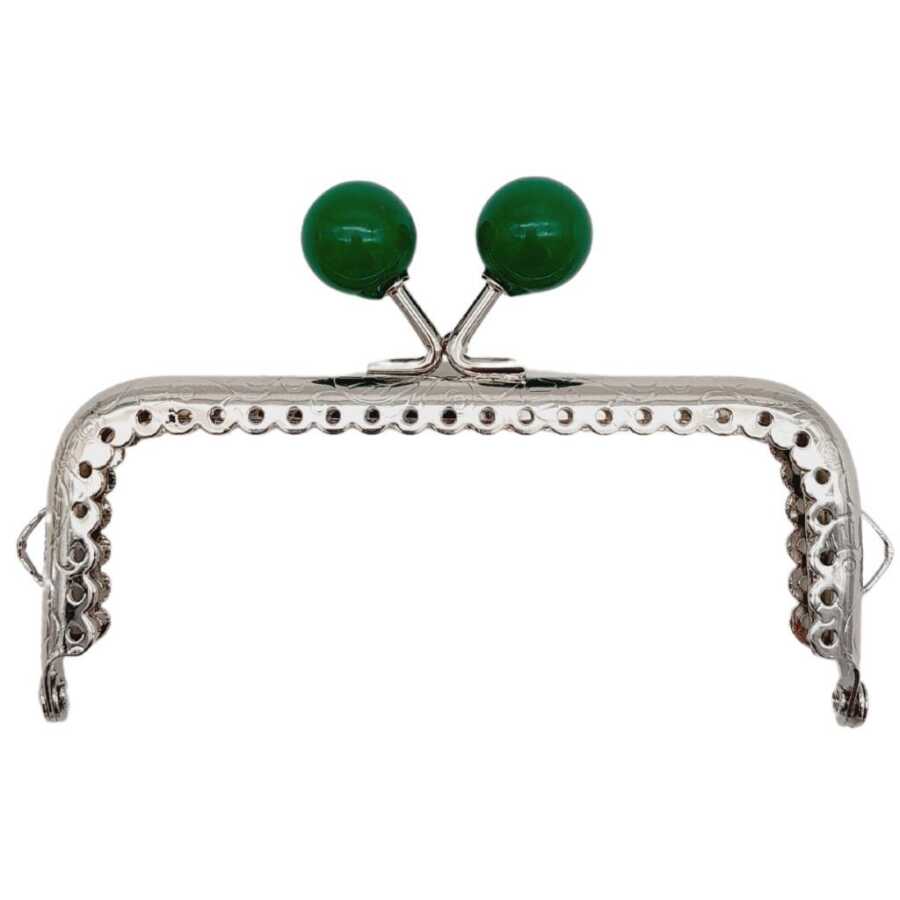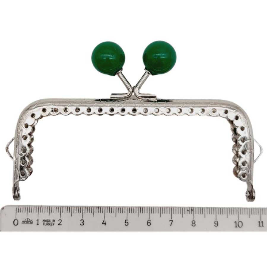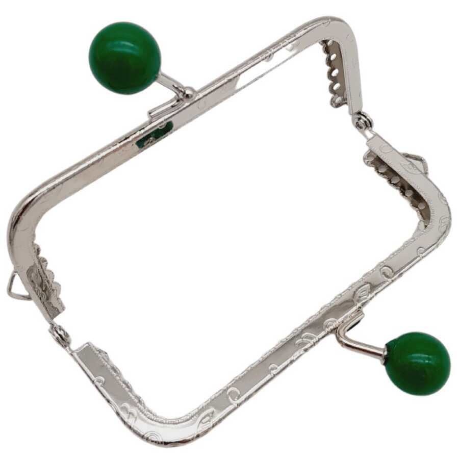 Angel Çanta Aksesuar 10.5 cm Gümüş Metal Yeşil Toplu Dikdörtgen Cüzdan Klipsi Çanta Bursu Model 2