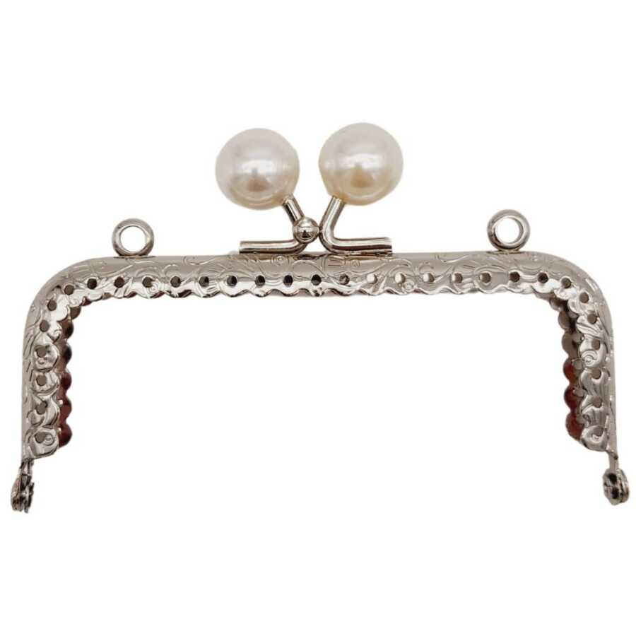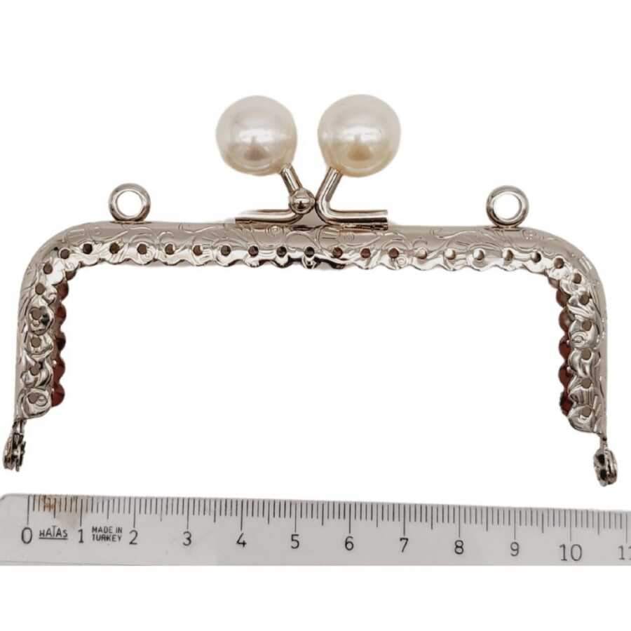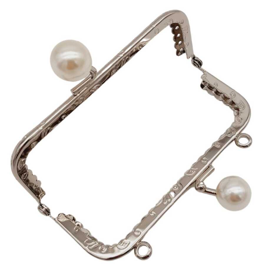 Angel Çanta Aksesuar 10.5 cm İncili Dikdörtgen Cüzdan Çanta Klipsi Bursu Gümüş Metalli