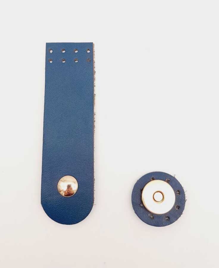 Angel Çanta Aksesuar 11x3 cm Lacivert Gerçek Deri Düz Çanta Kapağı Light Gold Metalli