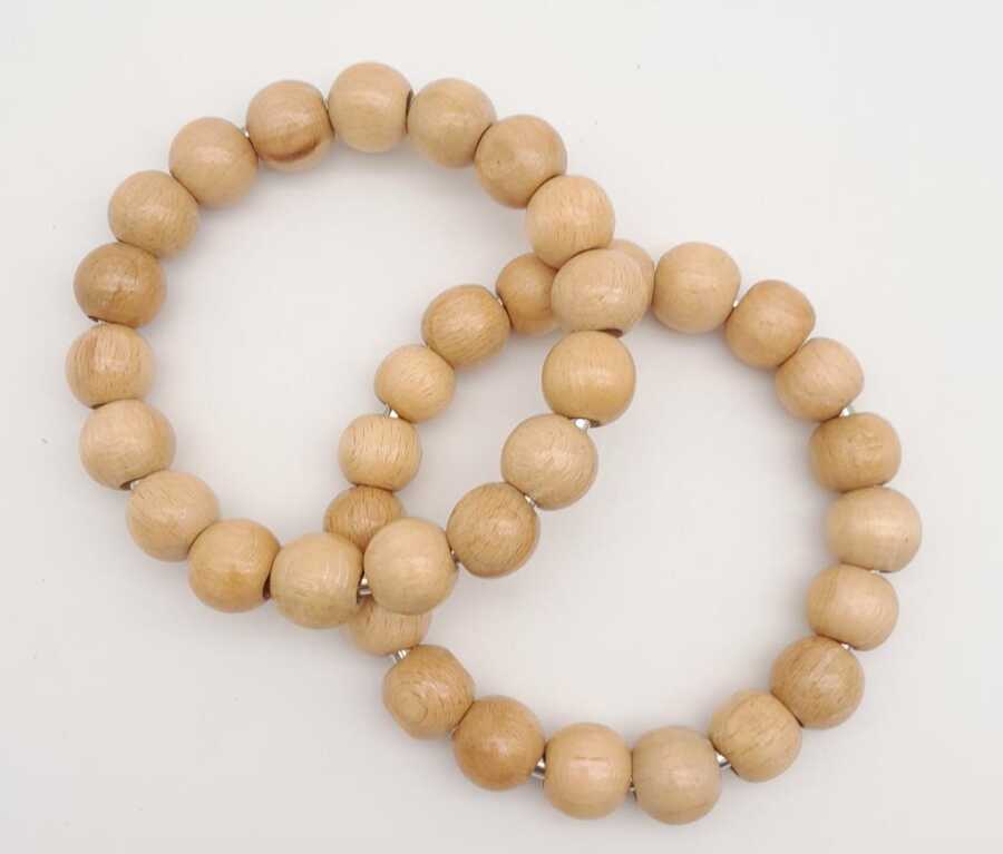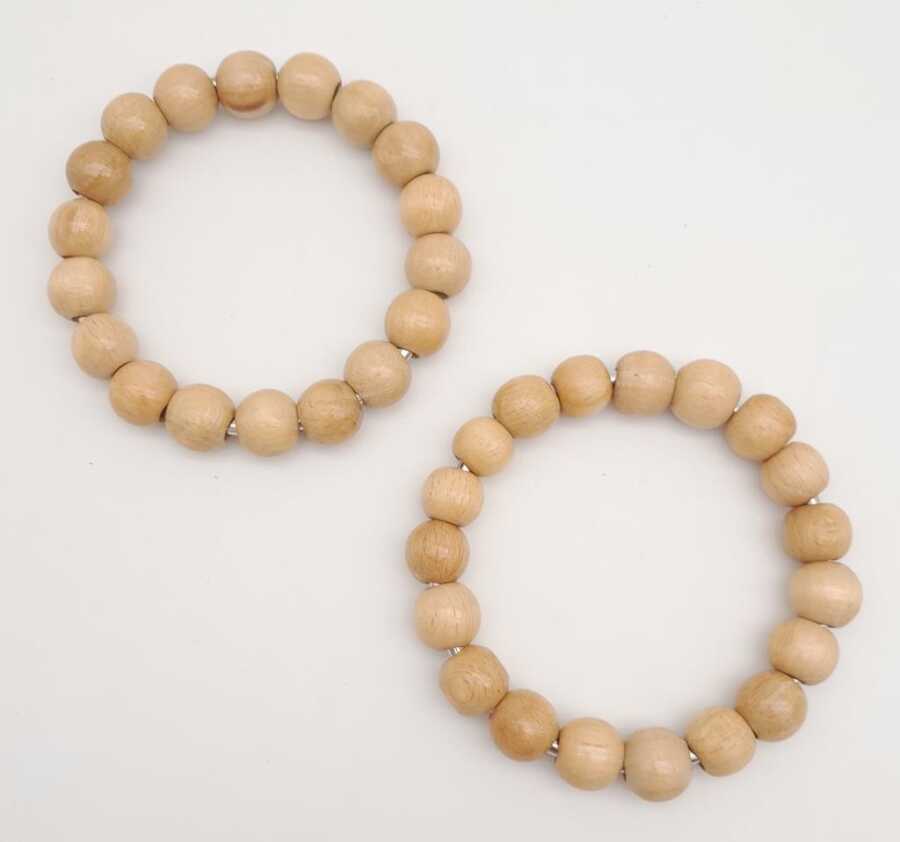 Angel Çanta Aksesuar 12 cm Ahşap Boncuklu Bilezik Model Açık Ahşap Renk Çift Sap