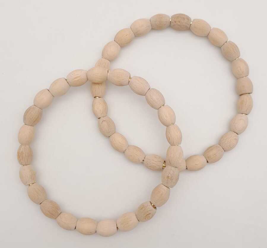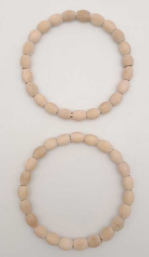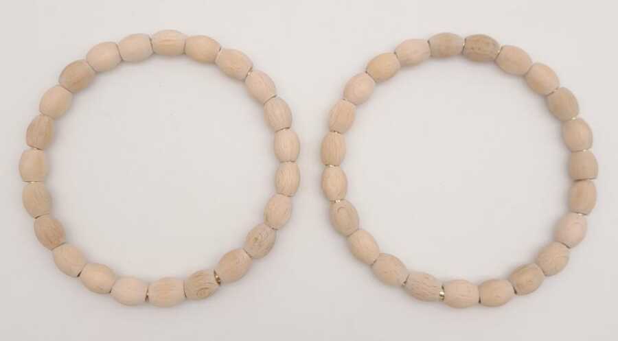 Angel Çanta Aksesuar 12 cm Oval Ahşap Boncuklu Bilezik Model Ham Ahşap Çift Sap