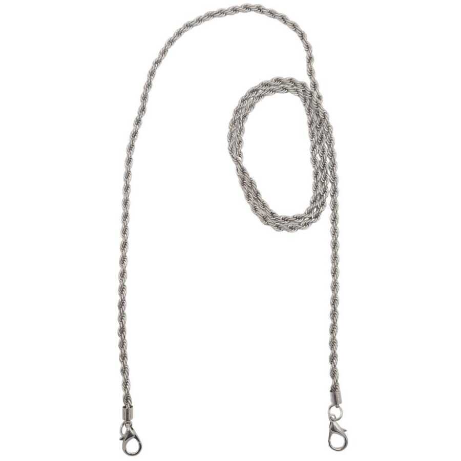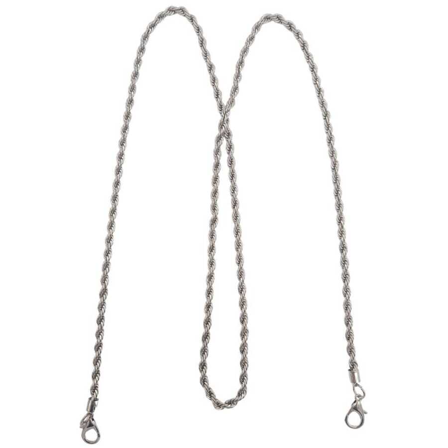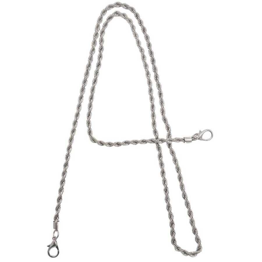 Genişlik: 0,5 cm Uzunluk : 120 cm Renk : Gümüş Ucunda kancaları takılı haldedir. Tek Olarak Satılır