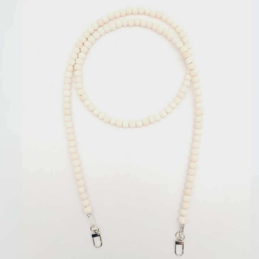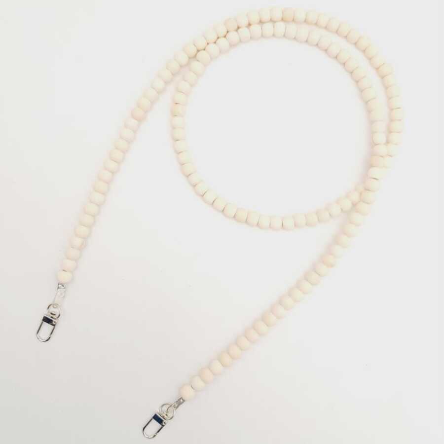 Kancalar Dahil Uzunluk: 120 cm Ahşap Boncuk Çapı : 8 mm Metal Aparat Renk : Gümüş Tek olarak satılır.