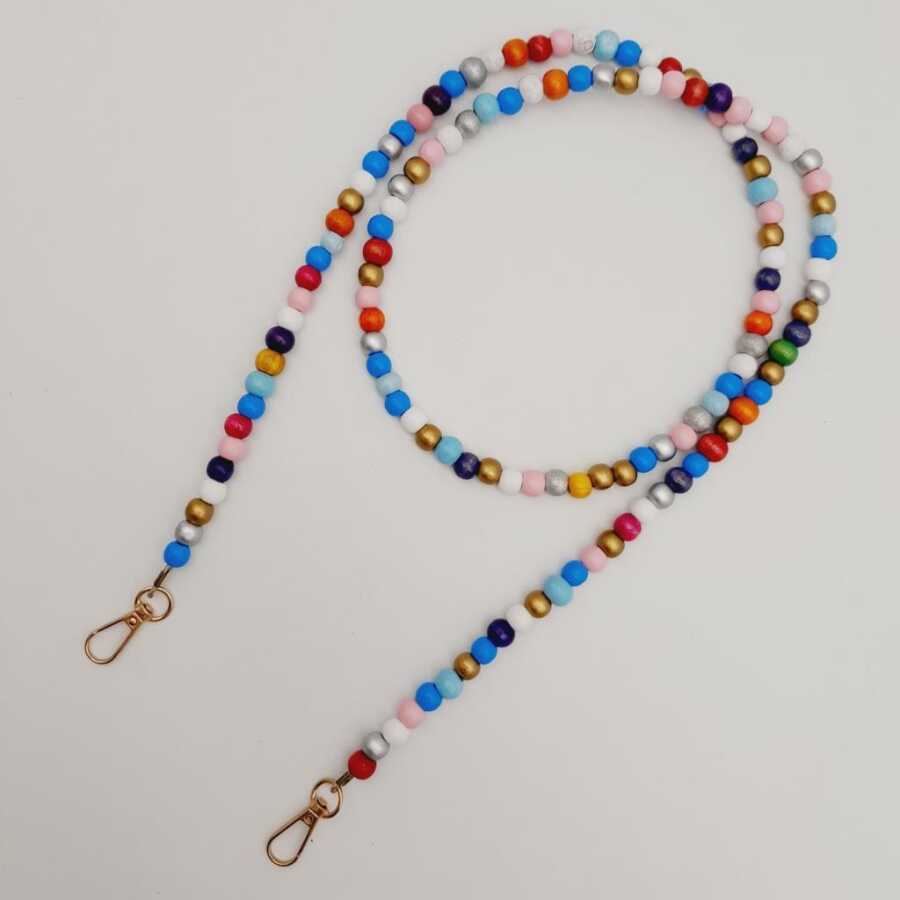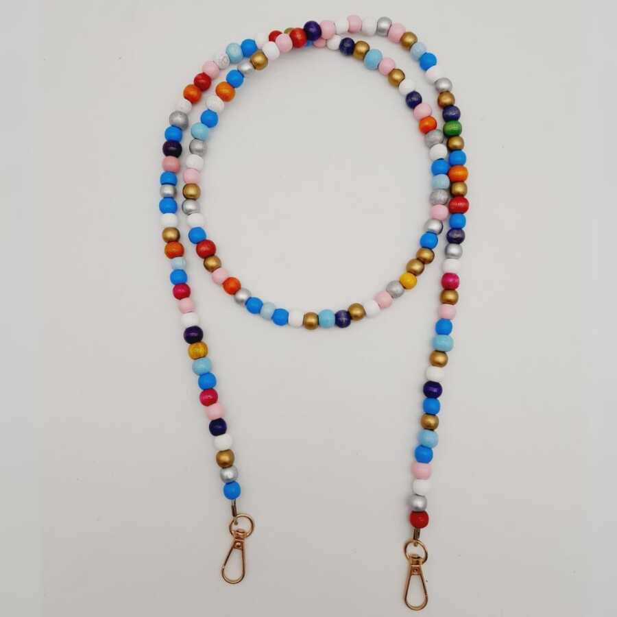 Kancalar Dahil Uzunluk: 120 cm Ahşap Boncuk Çapı : 8 mm Metal Aparat Renk : Light Gold Tek olarak satılır.