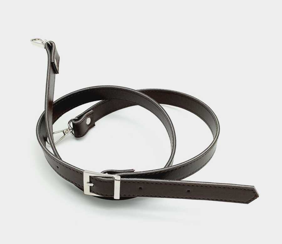 Angel Çanta Aksesuar 120X2 Cm Suni Deri Gümüş Tokalı Koyu Kahve Renk Çanta Sapı