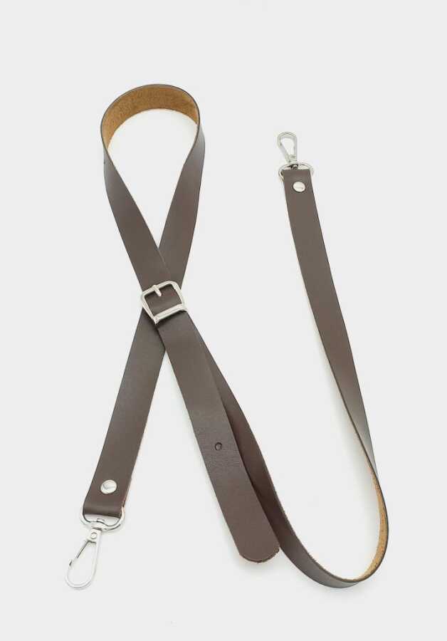 Angel Çanta Aksesuar 120X2 Cm Tek Kat Kahverengi Suni Deri Gümüş Tokalı Çanta Sapı