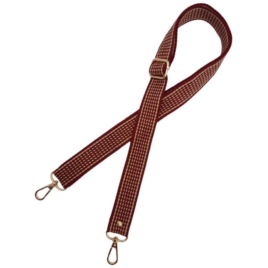 Angel Çanta Aksesuar 120x3 cm Polyester Kolon Çanta Sapı Bordo Renk Bej Şeritli Light Gold Metalli