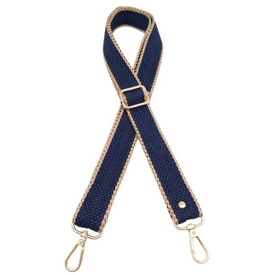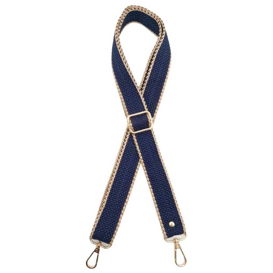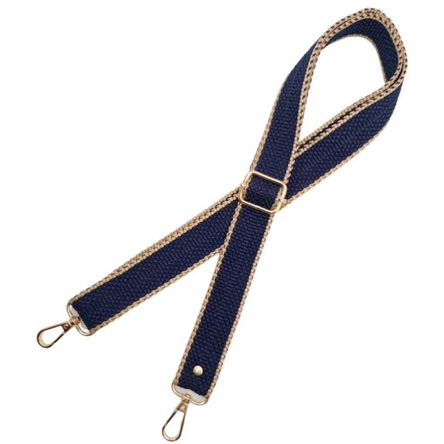Angel Çanta Aksesuar 120x3 cm Polyester Kolon Çanta Sapı Lacivert Renk Bej Şeritli Light Gold Metalli