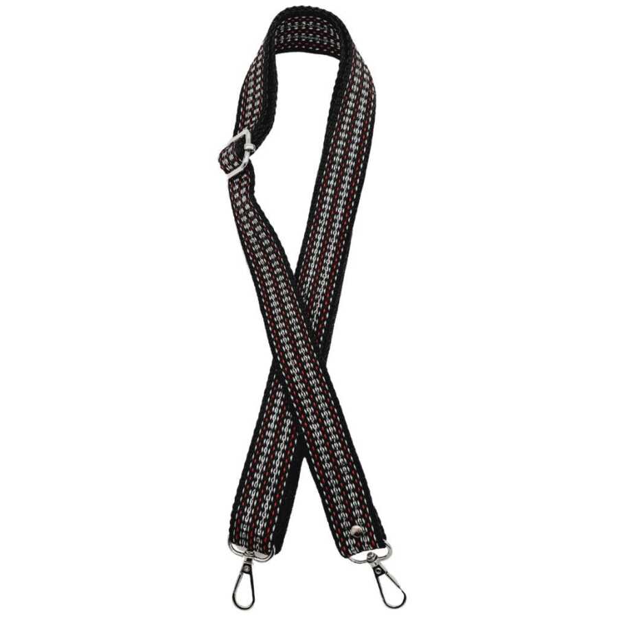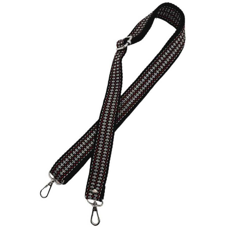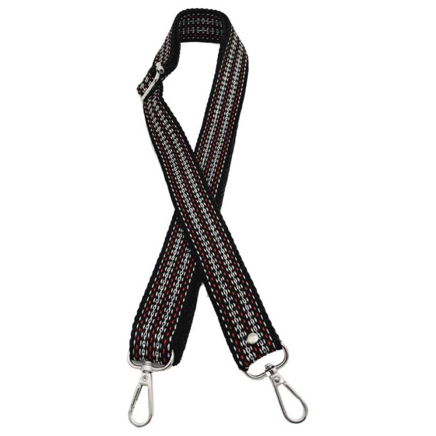 Angel Çanta Aksesuar 120x3 cm Polyester Kolon Çanta Sapı Siyah Renk Gümüş Şeritli Gümüş Metalli