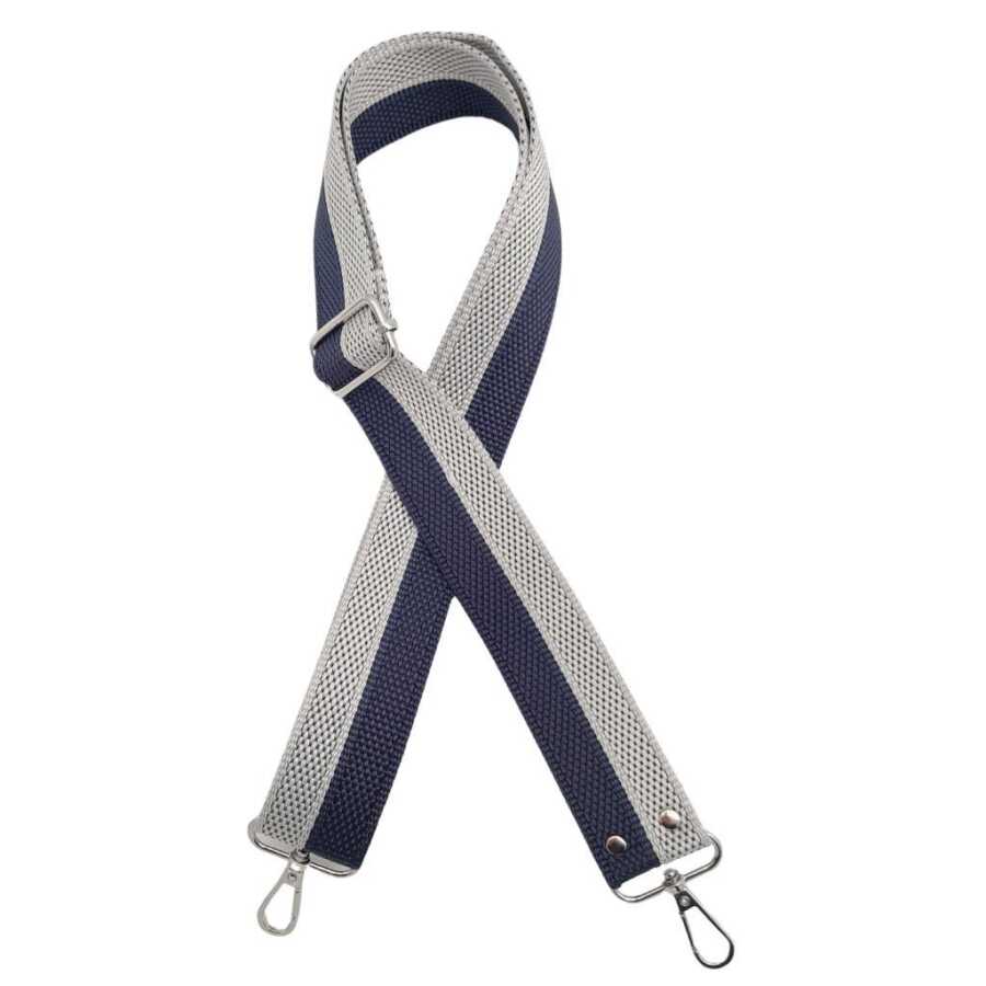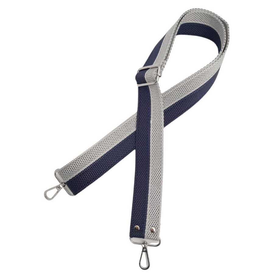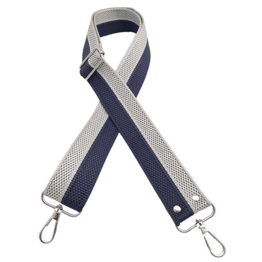 Angel Çanta Aksesuar 120x4 cm Polyester Kolon Çanta Sapı Lacivert Gri Renk Gümüş Metalli