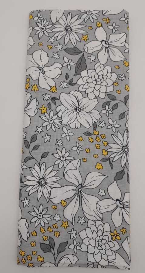 Angel Çanta Aksesuar 120X50 Cm Gri Çiçekli Desen Pamuklu Astarlık Kumaş No:17