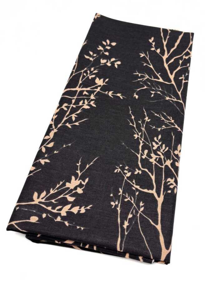 Angel Çanta Aksesuar 120x50 cm Pamuklu Astarlık Kumaş Siyah Ağaçlı Desen
