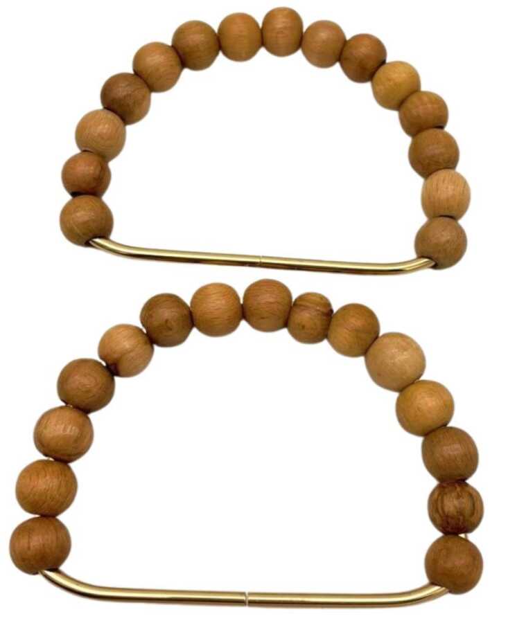 Angel Çanta Aksesuar 12x10 cm D Model Ahşap Boncuklu Açık Renk Çift Çanta Sapı