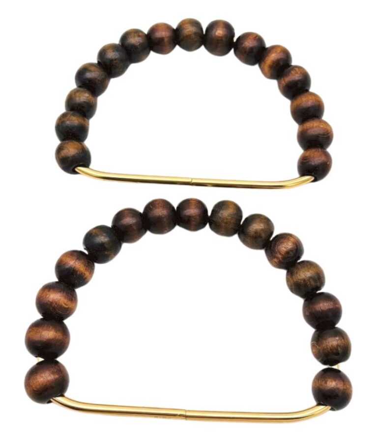Angel Çanta Aksesuar 21 Cm Koyu Renk Ahşap Boncuklu Çift Çanta Sapı (Light Gold Metalli)