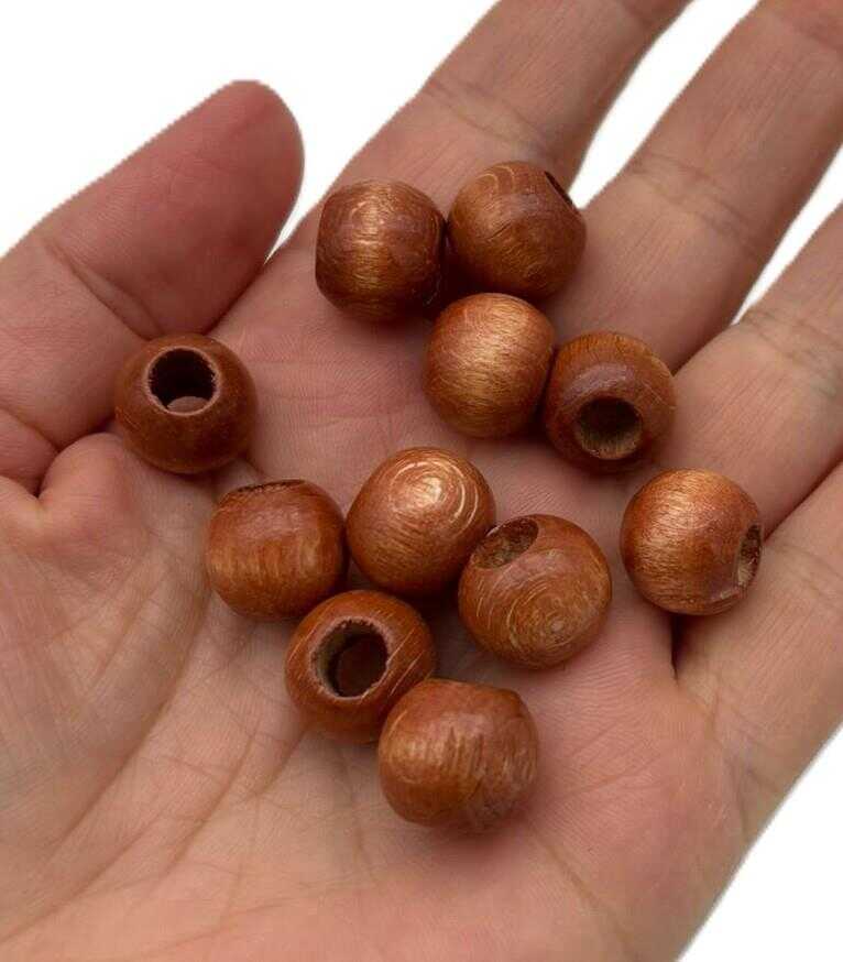 Angel Çanta Aksesuar 14 mm Ahşap Yuvarlak Boncuk Taba Renk 10 Adet