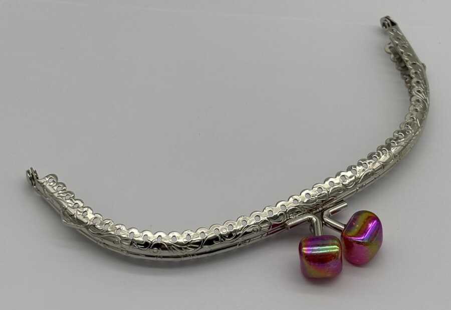 Angel Çanta Aksesuar 15.5 cm Gümüş Oval Cüzdan Çanta Klipsi Bursu Kırmızı