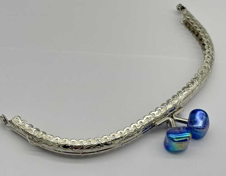 Angel Çanta Aksesuar 15.5 cm Gümüş Oval Cüzdan Çanta Klipsi Bursu Yanardöner Mavi