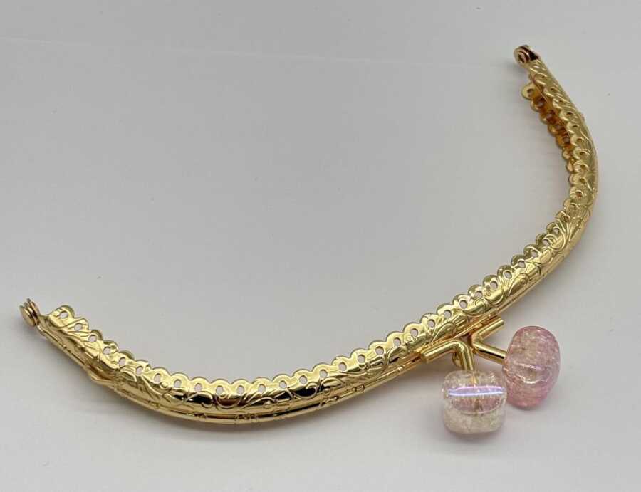 Angel Çanta Aksesuar 15.5 cm Light Gold Oval Cüzdan Çanta Klipsi Bursu Açık Pembe