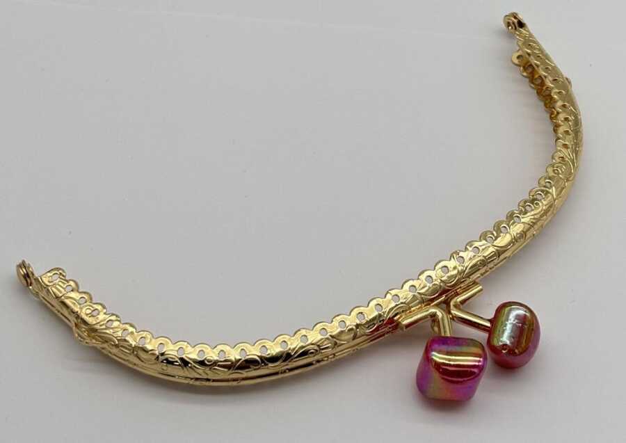 Angel Çanta Aksesuar 15.5 cm Light Gold Oval Cüzdan Çanta Klipsi Bursu Kırmızı