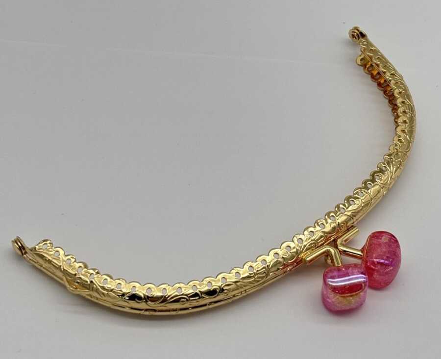 Angel Çanta Aksesuar 15.5 cm Light Gold Oval Cüzdan Çanta Klipsi Bursu Koyu Pembe