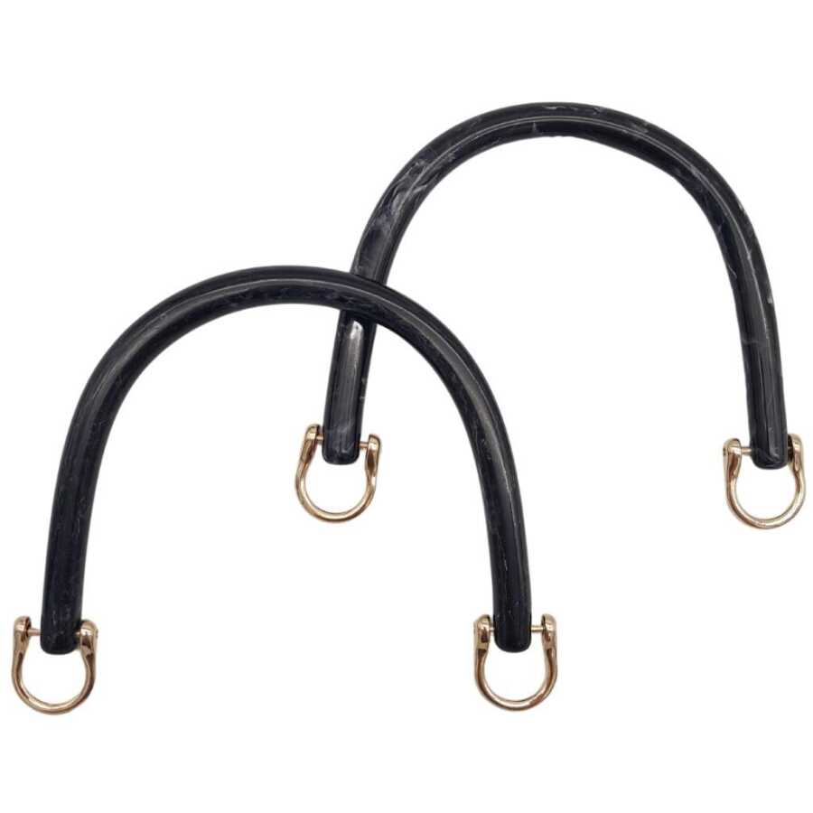 Angel Çanta Aksesuar 16 cm Akrilik Siyah Renk Çanta Tutma Sapı Light Gold Metalli