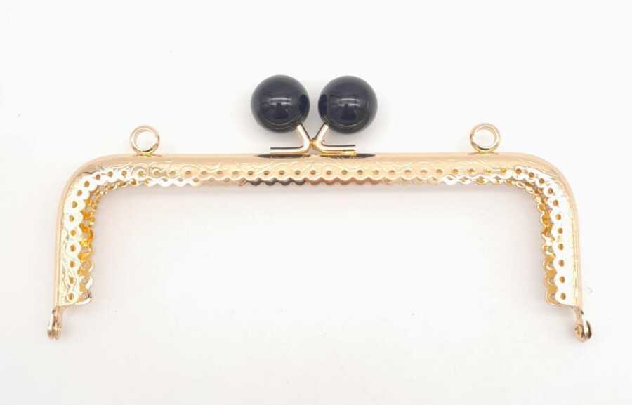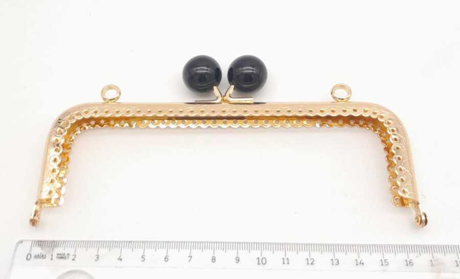 Angel Çanta Aksesuar 16.5 cm Siyah Toplu Çanta Klipsi Çanta Bursu Light Gold Metal