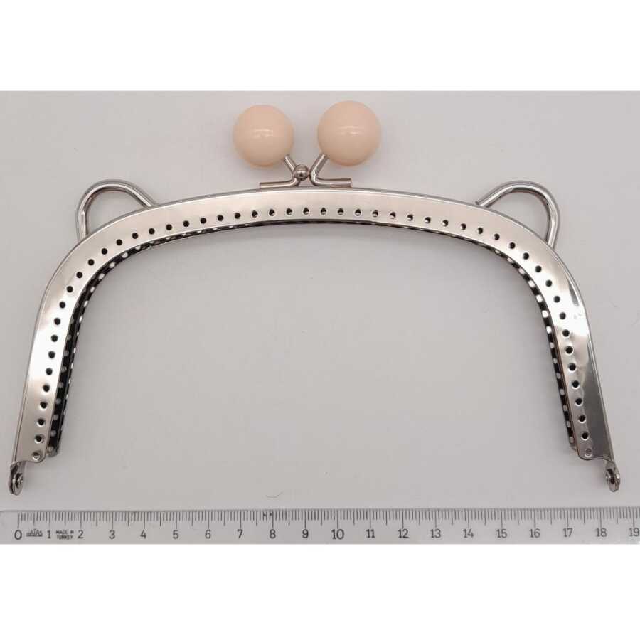 Angel Çanta Aksesuar 18.5 cm Pudra Renk Toplu Oval Çanta Klipsi Çanta Bursu Gümüş Metal