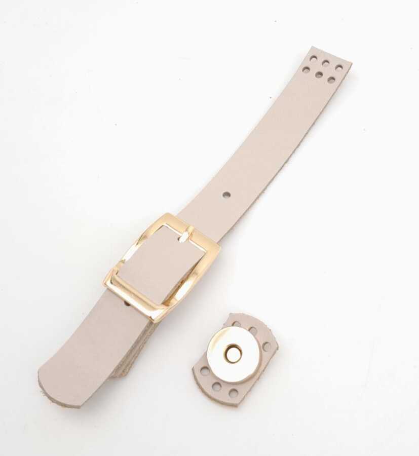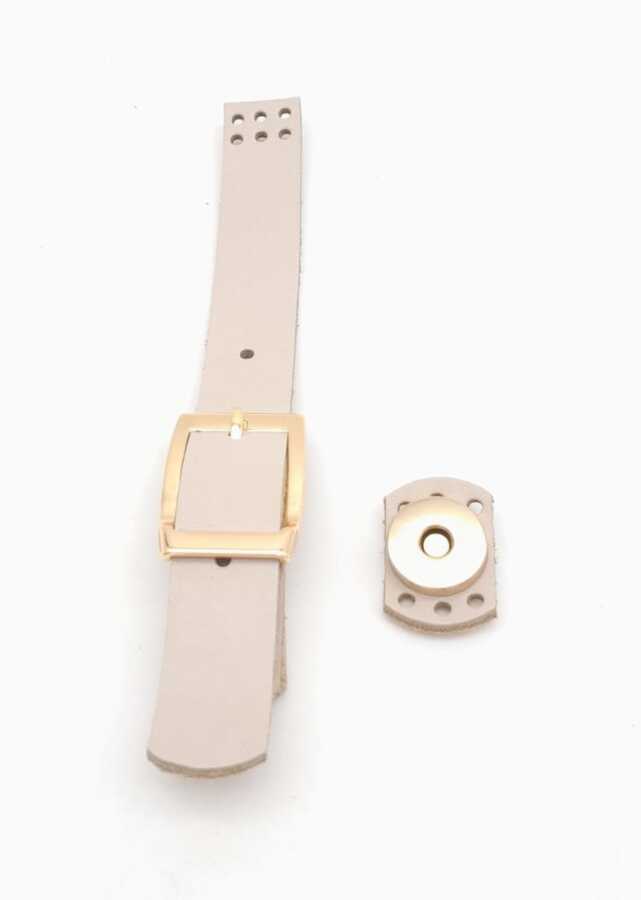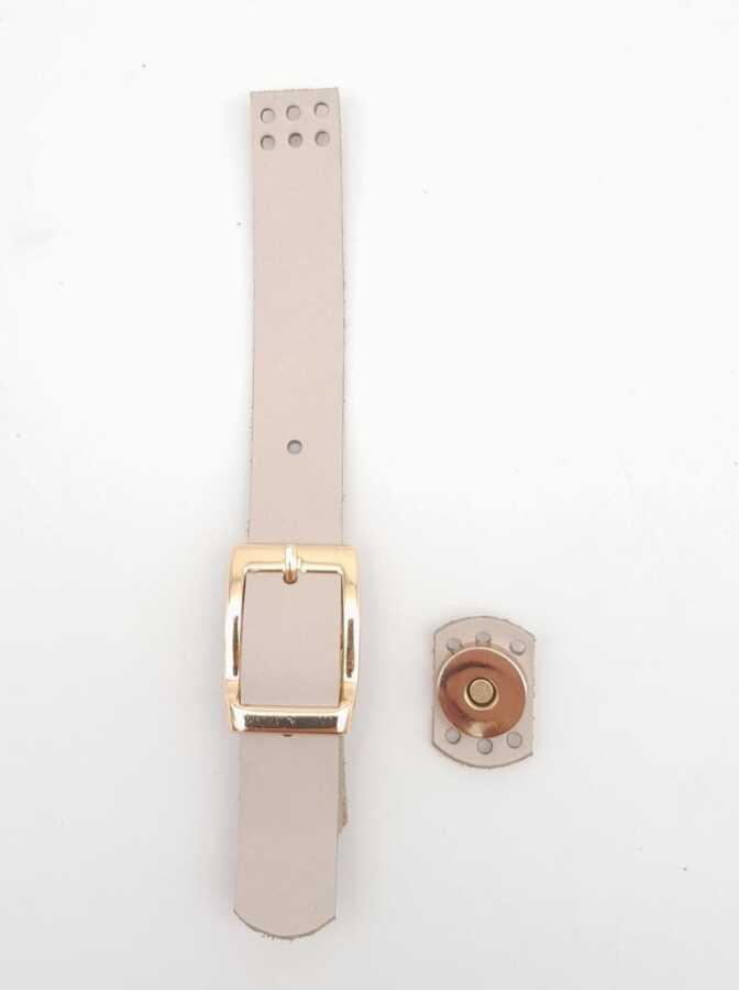 Angel Çanta Aksesuar 18x2 cm Bej Renk Gerçek Deri Tokalı Çanta Kapağı Light Gold Metalli