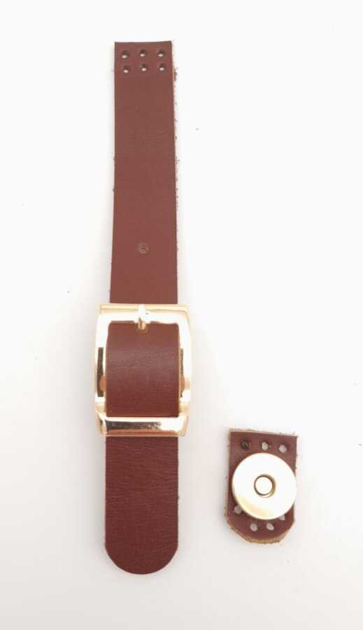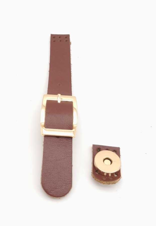 Angel Çanta Aksesuar 18x2 cm Kızıl Kahve Renk Gerçek Deri Tokalı Çanta Kapağı Light Gold Metalli
