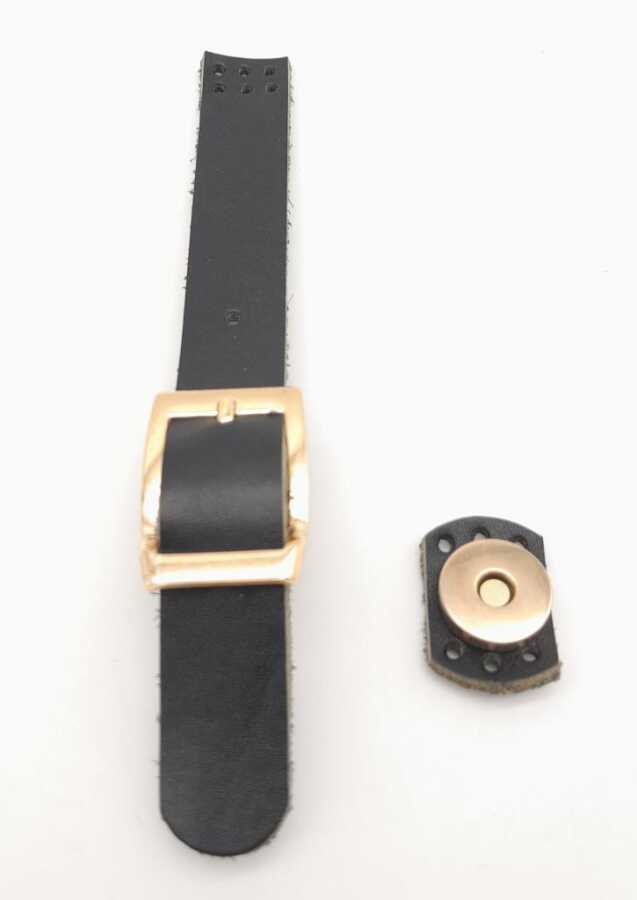 Angel Çanta Aksesuar 18x2 cm Siyah Renk Gerçek Deri Tokalı Çanta Kapağı Light Gold Metalli