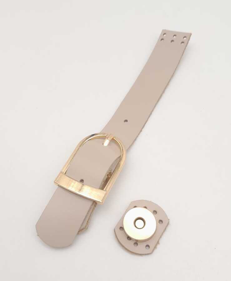 Angel Çanta Aksesuar 18x2,3 cm Bej Gerçek Deri Tokalı Çanta Kapağı Light Gold Metalli