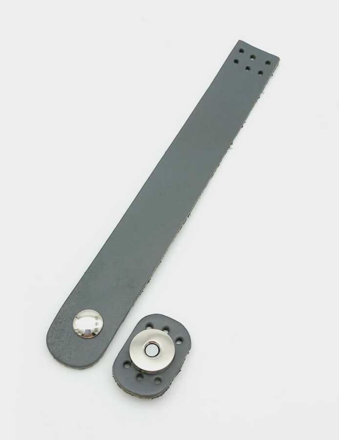 Angel Çanta Aksesuar 18x2,3 cm Gri Gerçek Deri Düz Çanta Kapağı Gümüş Metalli