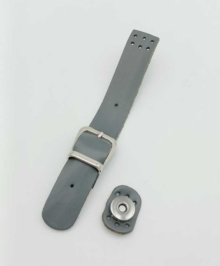 Angel Çanta Aksesuar 18x2,3 cm Gri Gerçek Deri Tokalı Çanta Kapağı Gümüş Metalli