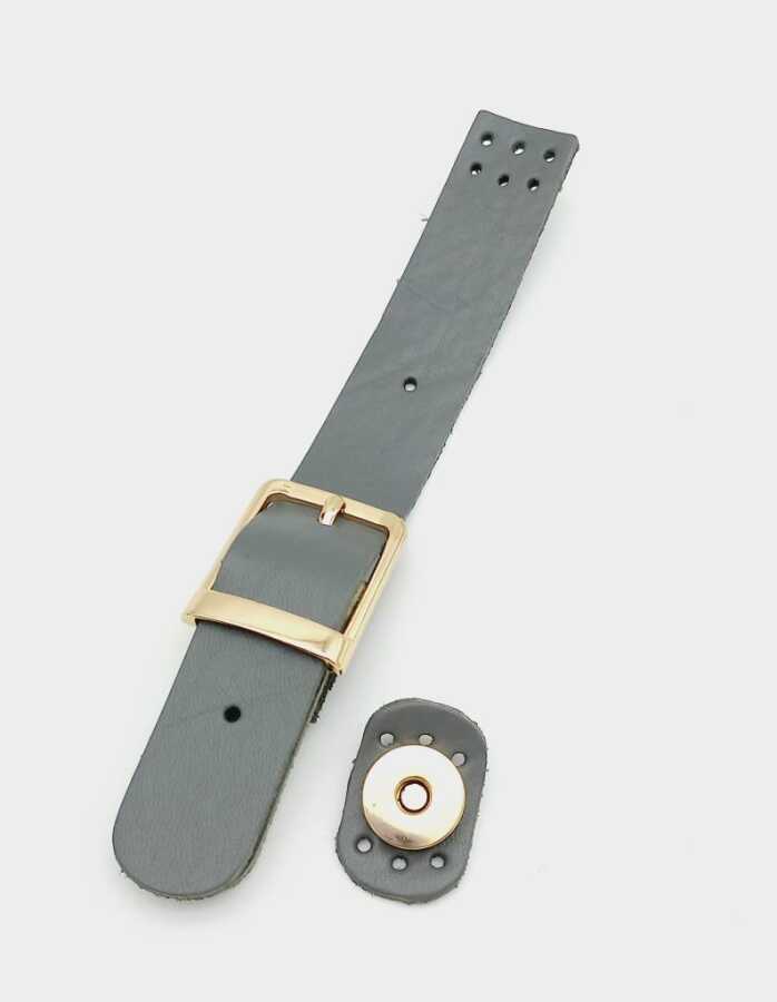 Angel Çanta Aksesuar 18x2,3 cm Gri Gerçek Deri Tokalı Çanta Kapağı Light Gold Metalli
