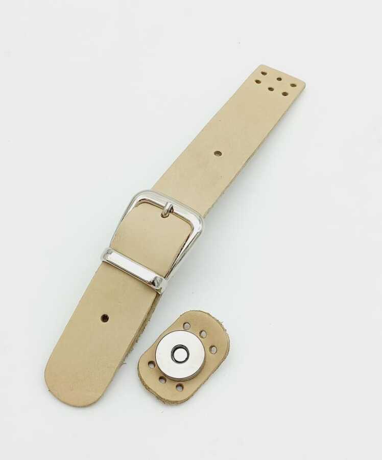 Angel Çanta Aksesuar 18x2,3 cm Ham (Doğal) Gerçek Deri Tokalı Çanta Kapağı Gümüş Metalli
