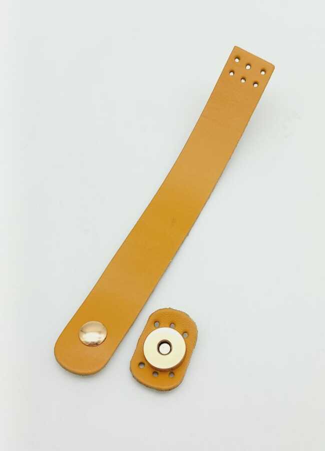 Angel Çanta Aksesuar 18x2,3 cm Hardal Gerçek Deri Düz Çanta Kapağı Light Gold Metalli