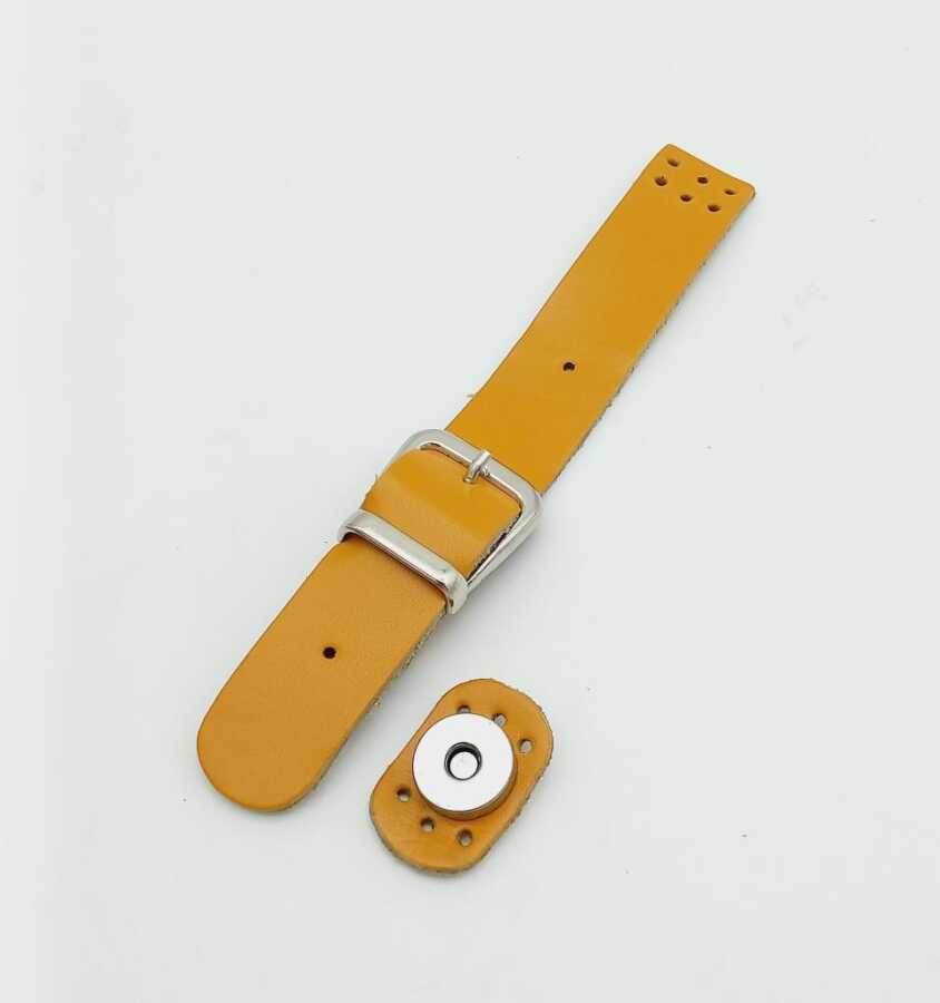 Angel Çanta Aksesuar 18x2,3 cm Hardal Gerçek Deri Tokalı Çanta Kapağı Gümüş Metalli