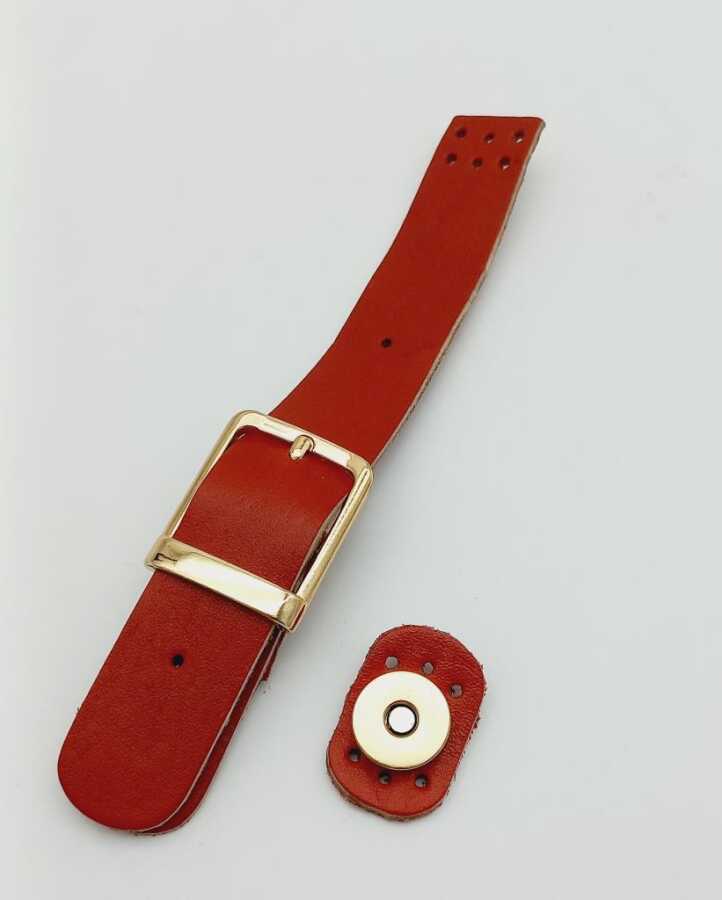 Angel Çanta Aksesuar 18x2,3 cm Kırmızı Gerçek Deri Tokalı Çanta Kapağı Light Gold Metalli