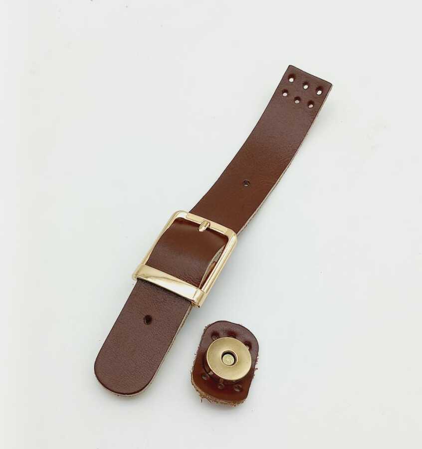 Angel Çanta Aksesuar 18x2,3 cm Kızıl Kahve Gerçek Deri Tokalı Çanta Kapağı Light Gold Metalli