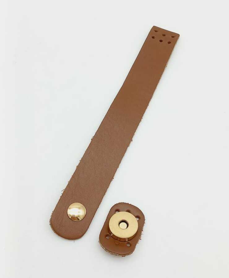 Angel Çanta Aksesuar 18x2,3 cm Sütlü Kahve Gerçek Deri Düz Çanta Kapağı Light Gold Metalli