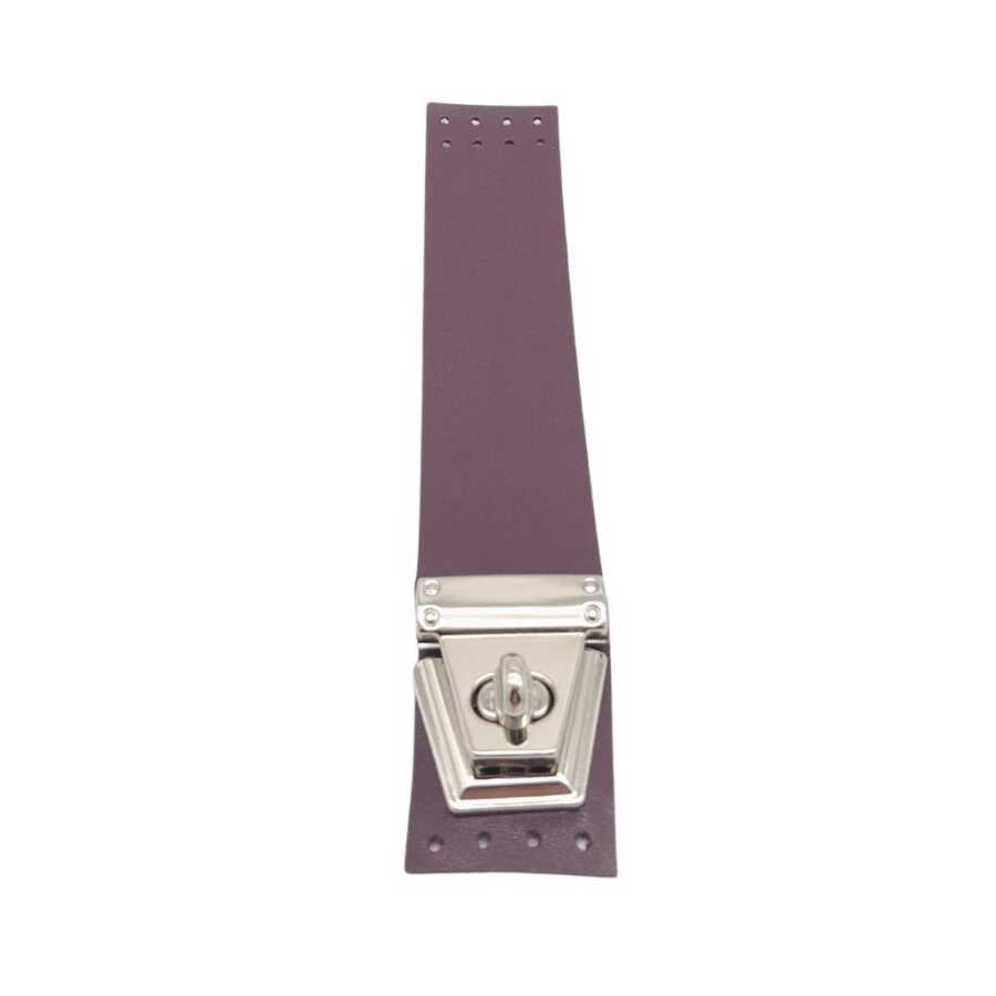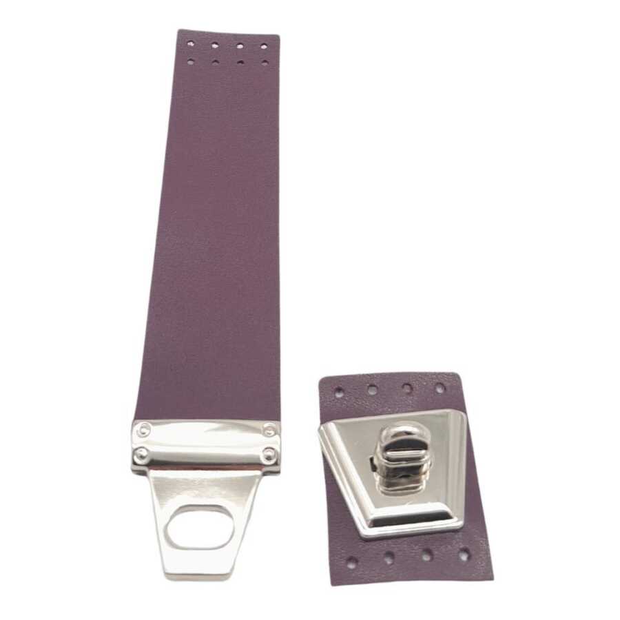 Angel Çanta Aksesuar 18x3.5 cm Suni Deri Mor Renk Kapak Gümüş Metalli